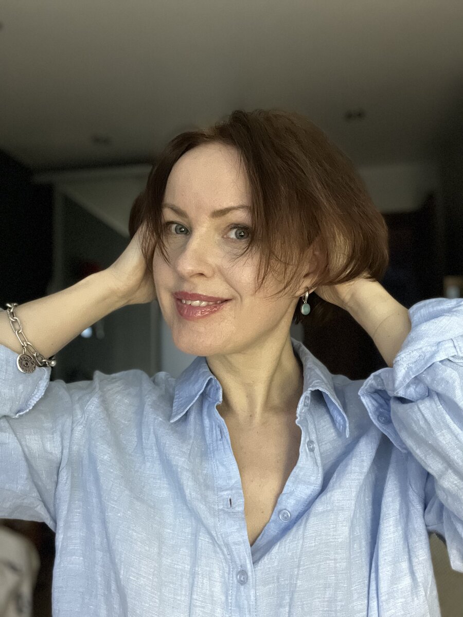 Кстати, я снова стала тёмненькой – покрасила волосы в натуральный оттенок с золотистым отливом. Это пока от седины совсем не избавилась😉